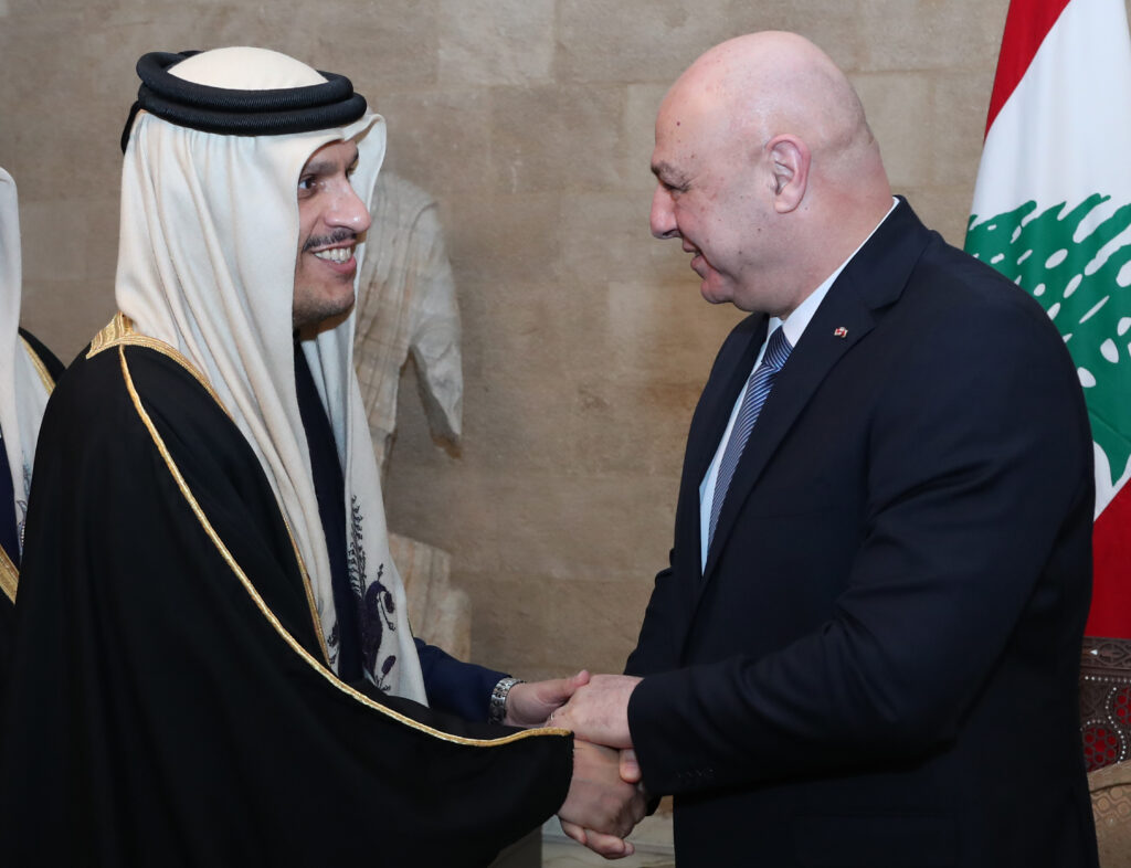 خلوة بين الرئيس عون ورئيس الوزراء وزير الخارجية القطري في قصر بعبدا