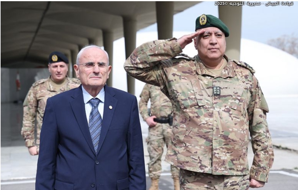 زار وزير الدفاع الوطني ميشال منسّى قيادة الجيش حيث كان في استقباله قائد الجيش بالنيابة اللواء الركن حسان عوده، وأدت له ثلة من العسكريين التشريفات اللازمة، ثم التقى عددًا من ضباط القيادة، وشدد على أن الجيش هو العمود الفقري للبنان نظرًا لدوره في الحفاظ على الأمن والاستقرار، معتبرًا أنه أنموذج يحتذى به بين المؤسسات.كما نوّه بأداء الجيش لتنفيذ الانتشار في الجنوب، وهنأ العسكريين بتزامُن شهر رمضان المبارك مع انطلاق الصوم الكبير.