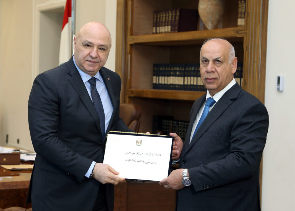 تسلم رئيس الجمهورية العماد جوزاف عون صباح اليوم رسالة خطية من رئيس جمهورية العراق عبد اللطيف جمال رشيد نقلها اليه وزير الثقافة والسياحة والاثار العراقي السيد احمد فكاك البدراني، تضمنت دعوة رسمية لحضور اعمال مؤتمر القمة العربية بدورته العادية الرابعة والثلاثين ومؤتمر القمة العربية التنموية الاقتصادية والاجتماعية في دورته الخامسة اللذين تستضيفهما بغداد ( دار السلام) يوم السبت الموافق في 17 أيار المقبل.