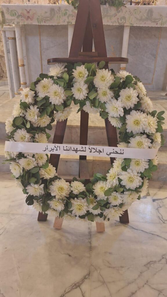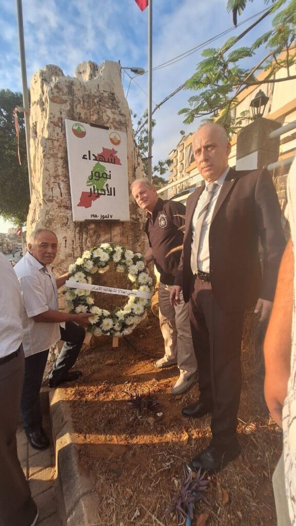 وكان قد سبق الاحتفال بالذبيحة الإلهية وضع قياديّ الحزب لإكليلٍ من الزهر على النصب التذكاري لشهداء ٧ تموز والوقوف دقيقة صمت إجلالاً لتضحياتهم.