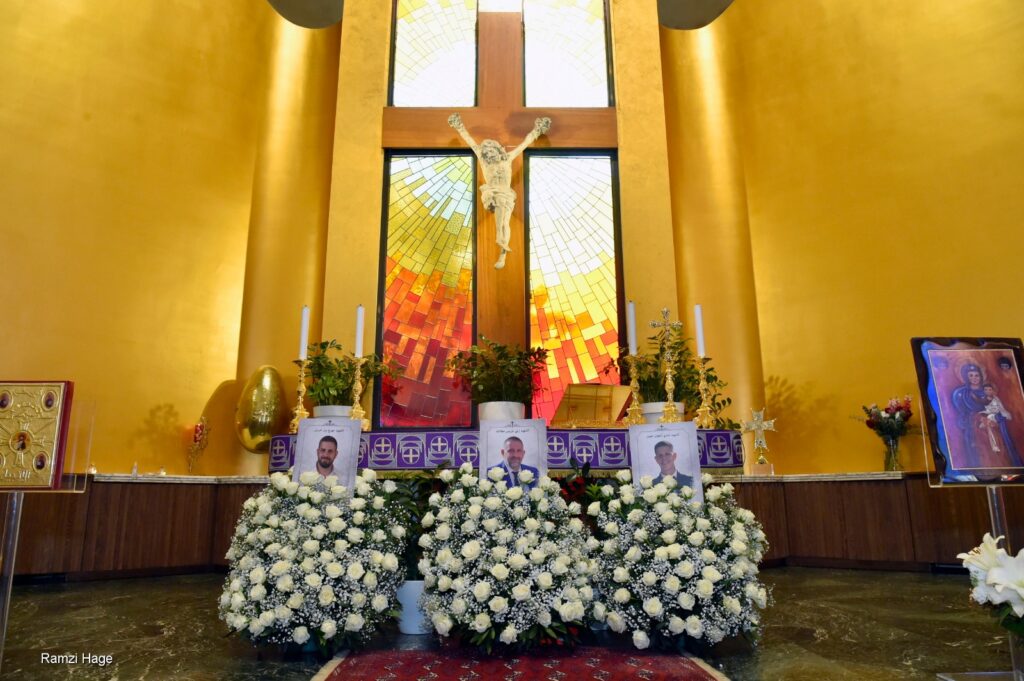 وترأس الذبيحة الإلهيّة المطران بولس عبد الساتر، بحضور حشد من الأهالي وذوي الشهداء، إلى جانب فعاليّات سياسيّة واجتماعيّة، حيث رُفعت الصلوات لراحة أنفس الشهداء وتعزية عائلاتهم.